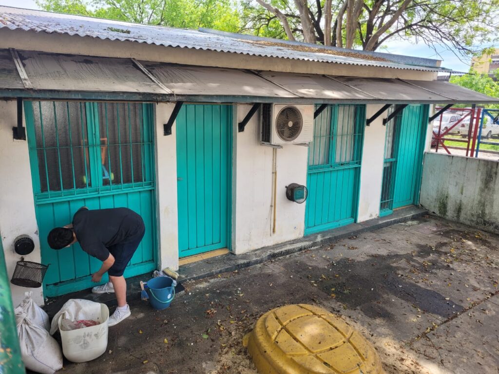 En esta oportunidad, cuatro estudiantes de Ingeniería Aeroespacial participaron en un trabajo de pintura en el frente y contrafrente del vecino Jardín de Infantes Nº 926 “María Angélica Barbier de Naudau” ubicado en Directorio 2119, Haedo, contribuyendo al mantenimiento de los espacios donde niñas y niños desarrollan sus actividades diarias.